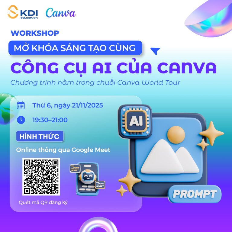Trong bối cảnh công nghệ giáo dục đang thay đổi không ngừng, Canva phối hợp cùng KDI Education tổ chức Workshop đặc biệt: “AI x Canva for Education – Mở khóa sáng