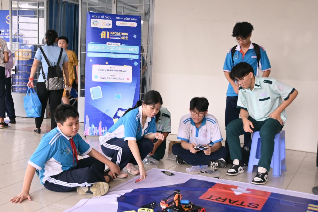 Trong hai ngày 25 và 26/10/2025, tại Trường THPT Phú Nhuận (TP. Hồ Chí Minh), Ban Tổ chức cuộc thi AI Hackathon 2025 – Kiến tạo cuộc sống số đã tổ chức buổi tập huấn chuyên môn dành cho các đội thi Bảng B – AI Robotics (THCS).
