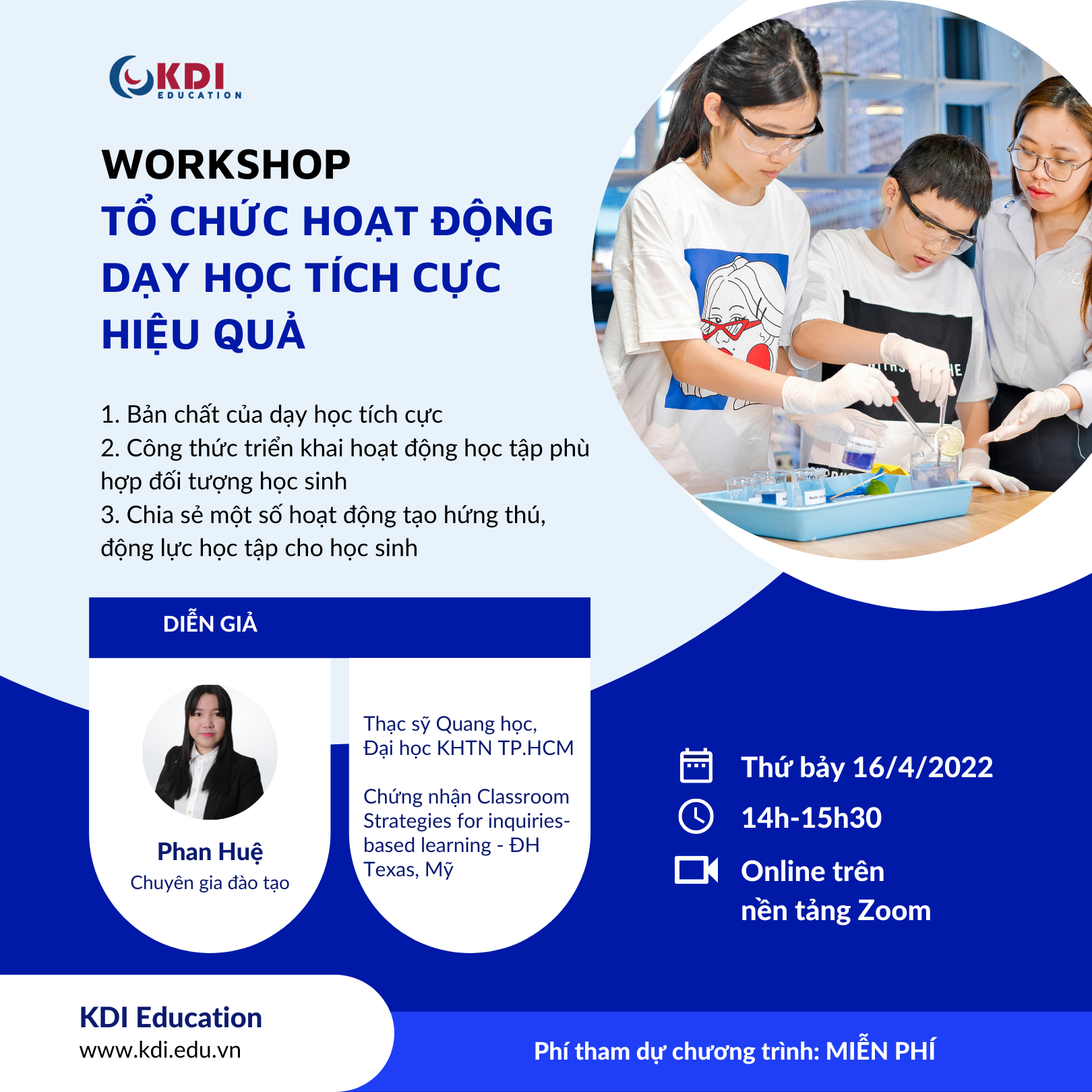 KDI Education tổ chức Workshop “Tổ chức hoạt động dạy học tích cực hiệu quả”, với nội dung chính:
